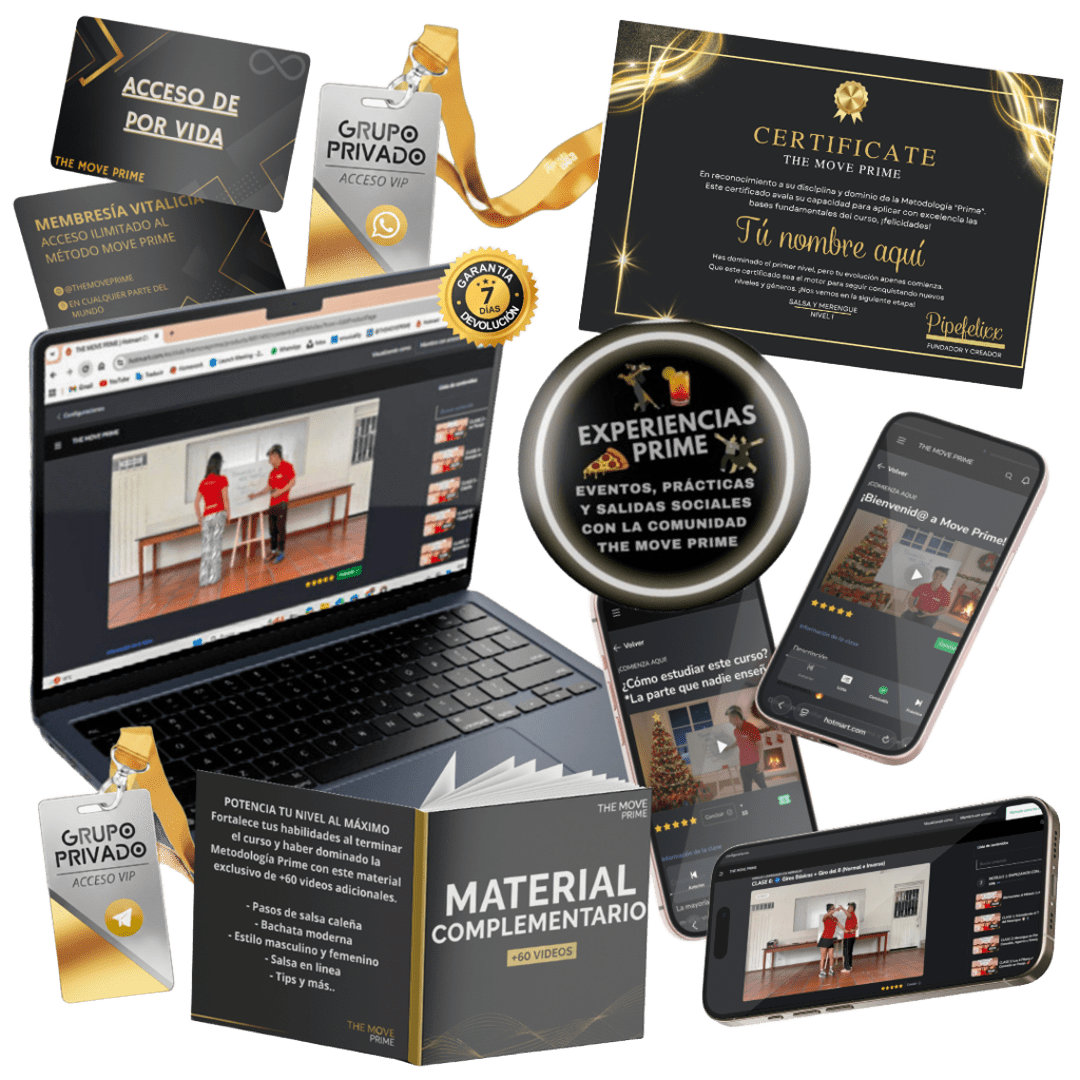 Move Prime te ayuda a soltar la inseguridad que aparece cuando toca bailar, o que mejores al conectar bailando, a dejar atrás la sensación de “no soy bueno para esto” y disfrutes con tu cuerpo y con la música. Al dominar las bases, empiezas a moverte con naturalidad, confianza y presencia.